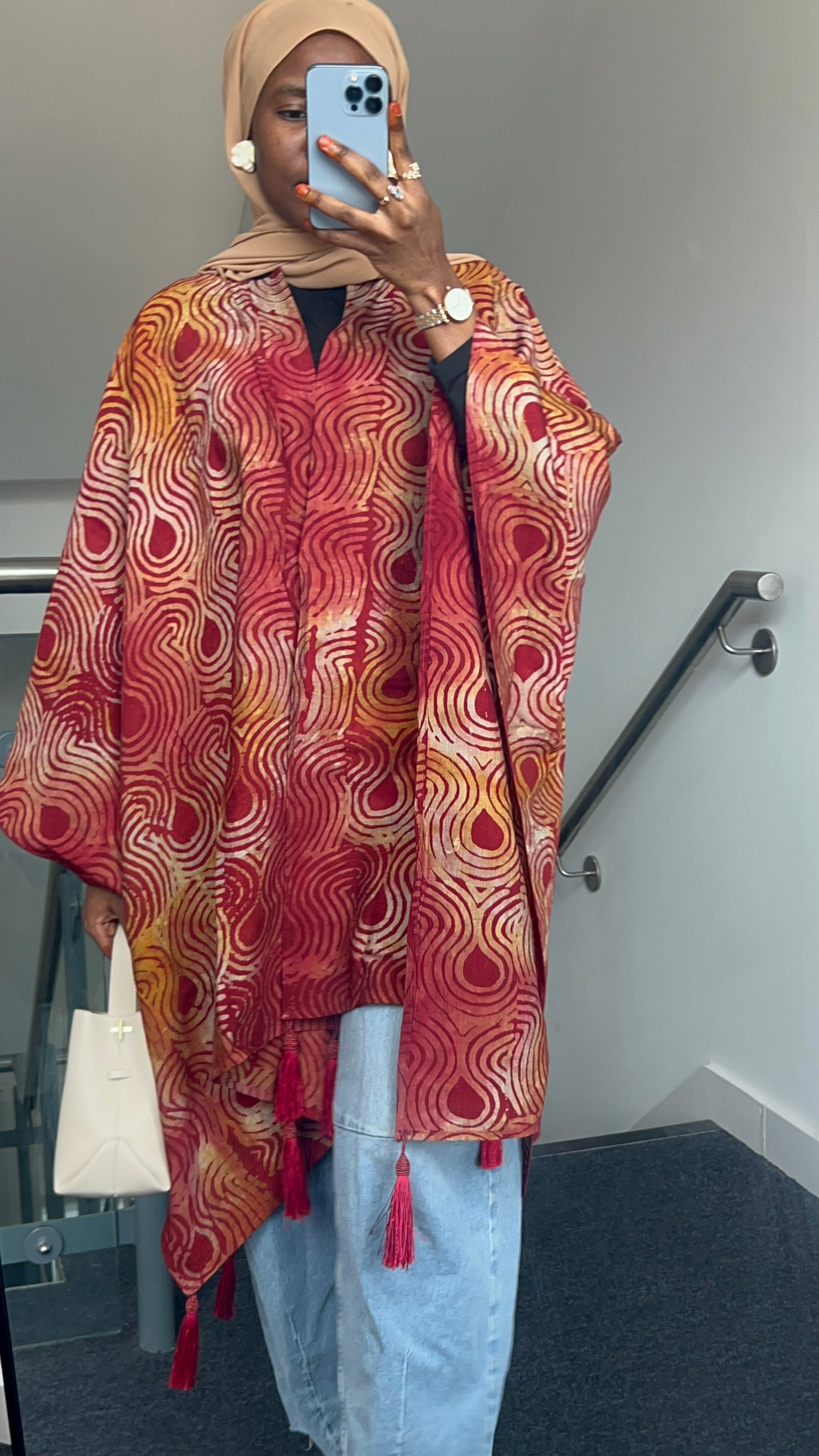 Elevate your wardrobe with our Adire Kimono with Fringes, a piece that beautifully merges traditional artistry with modern fashion. Hand-dyed using the rich, ancient Adire technique, each kimono features its own unique patterns and depth of color — making it truly one of a kind.