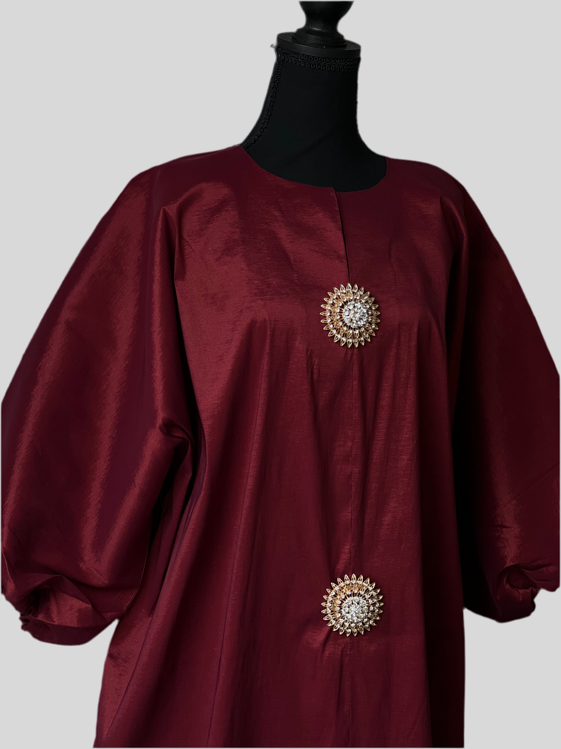 Elevate your elegance with our exquisite Raw Silk Dress, crafted from premium raw silk for a luxurious finish and a flawless drape. The highlight of this design is its handcrafted brooch appliqué, adding a touch of sophistication and sparkle that sets you apart at any event. Perfect for weddings, formal gatherings, and glamorous evenings, this dress blends timeless minimalism with refined opulence. Make every entrance unforgettable.