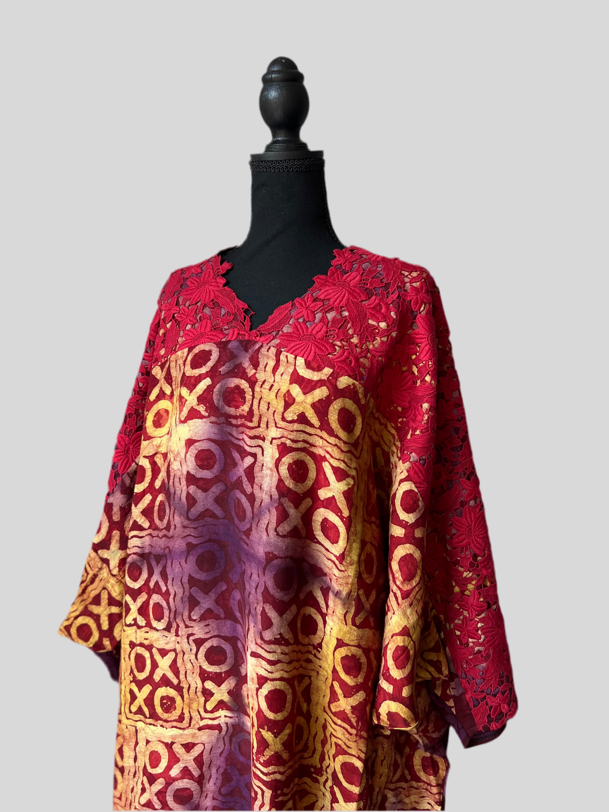 Made with light, free and airy Adire crepe and adorned with lace, this piece is a wardrobe must have